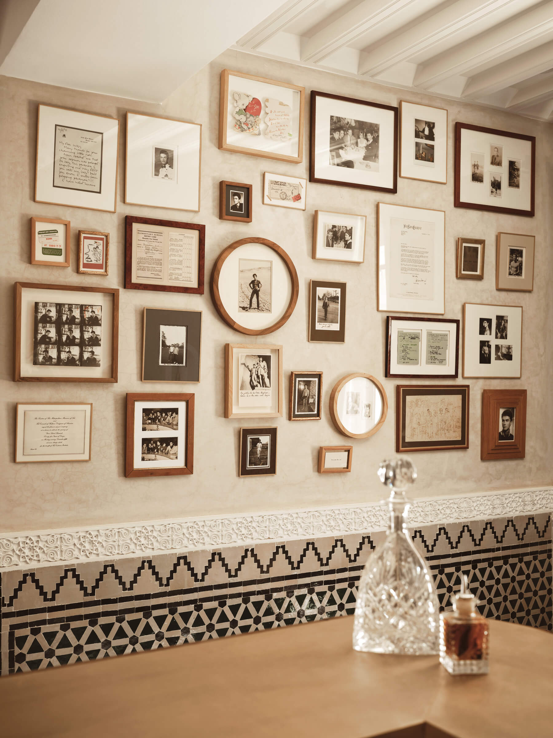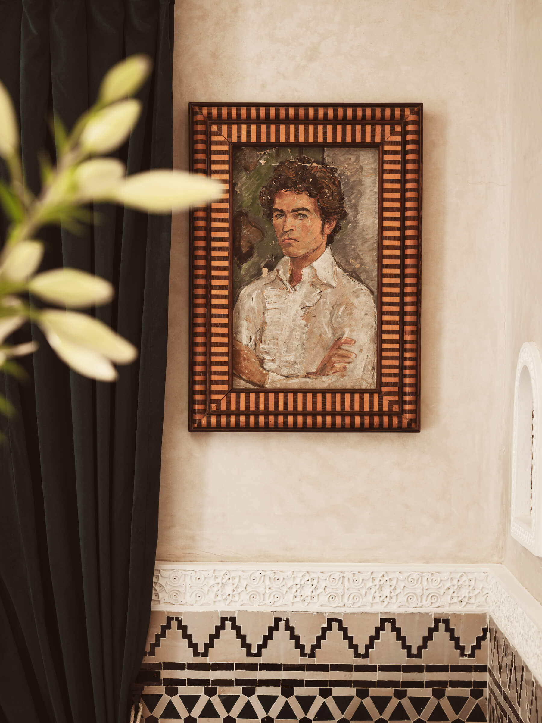 The archive that makes the bar possible was found by accident. When IZZA's owner, the tech entrepreneur Neil Hutchinson, purchased Dar Noujoum, Willis's former home in the Medina, the building was derelict and had been picked through by looters. Everything of obvious value was gone. But tucked into an alcove, missed by everyone who had come through, was a suitcase packed with letters, drawings, photographs and personal mementoes that now line the walls of the bar. Willis's beautiful room sketches adorn the bedrooms too, alongside grainy black and white photographs of a world that no longer exists but whose energy still moves through the corridors. In Moroccan architecture, everything that matters is on the inside.